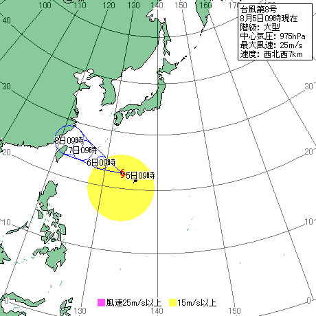 沖縄目掛けて接近中の8号... 南西寄りのBIG SWELL到達かと思いきや