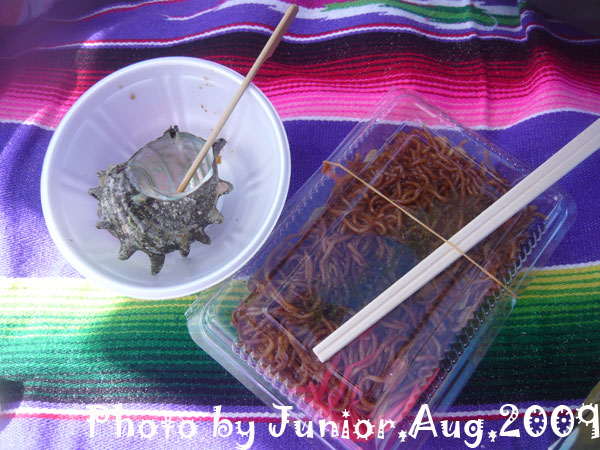 サザエと焼きそば。海で食べれば何でも美味しいのは何で??