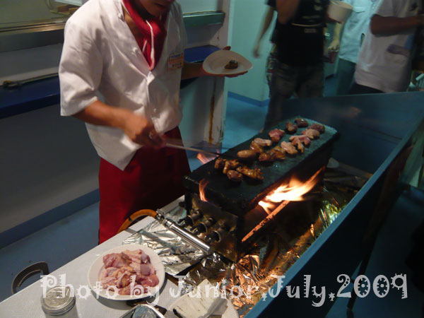 船内の様子②おつまみケバブ ペルーからご苦労様DESU