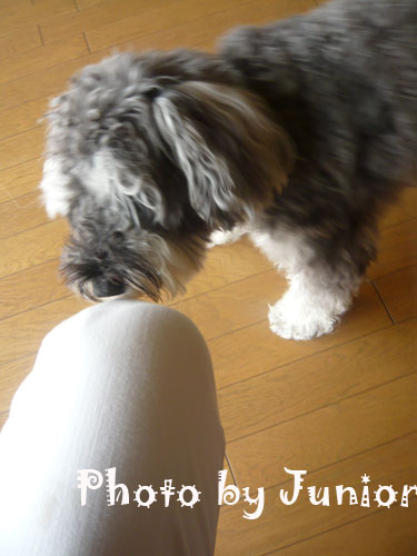 シュナウザーのSAM。俺の膝の匂い嗅いでた。臭いの??